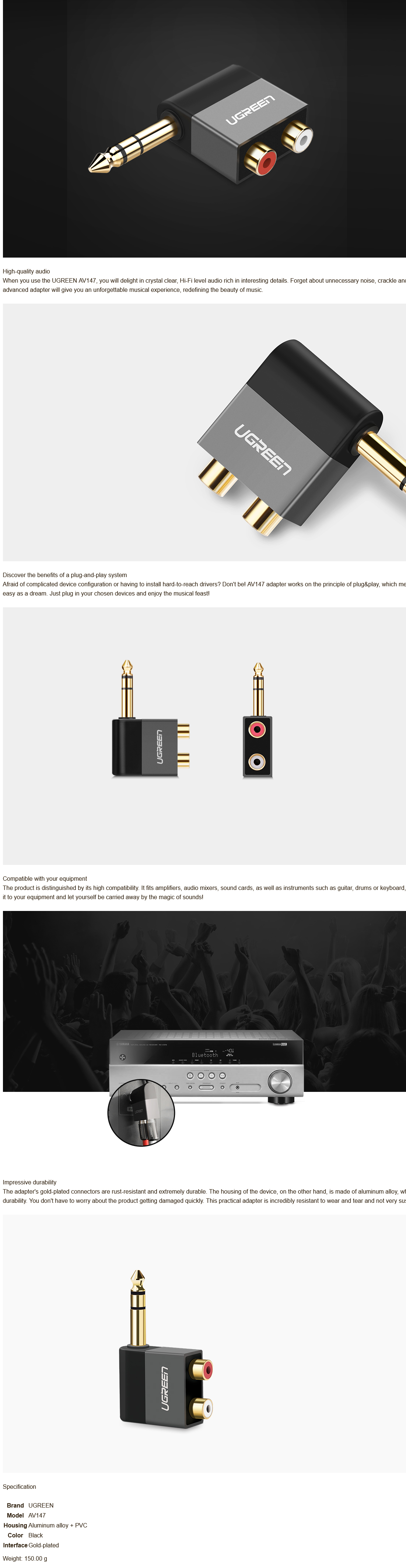 UGREEN AV147 6.35 Male to 2x RCA Female Adapter
